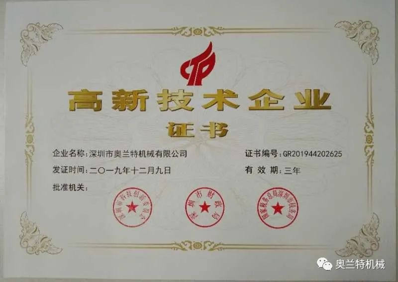 喜訊!深圳市奧蘭特機(jī)械有限公司榮獲國家高新技術(shù)企業(yè)認(rèn)證